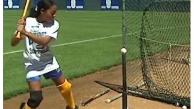 This is a great drill for teaching the batter to hit "three softballs" - this means she should be swinging along the plane of the ball for a distance of three softballs. She should not be upper-cutting (pop up) or rolling over on the ball (ground ball).
