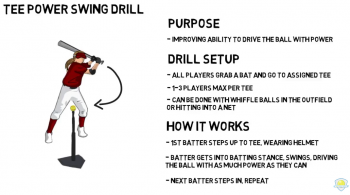 - Tee Drills — Hitting off the tee. The tee should be setup so that the ball is just inside your front foot after your stride.